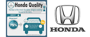 The quality and reliability of Honda vehicles is a major factor in their long-standing leadership in earning key industry value awards. For instance, for the second year in a row, Honda won ALG’s top honor of Best Mainstream Brand in its annual Residual Value Awards for vehicles that are predicted to retain the highest percentage of their original price after a conventional three-year period. Honda has won the top honor more than any other automaker — a record eight out of 11 years they’ve awarded a mainstream brand. In 2013, Honda also earned multiple awards for individual models for Best Resale Value from KBB.com and Best Retained Value from Edmunds.com.
