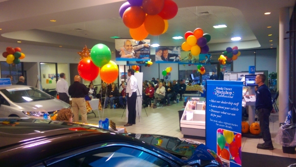 We had our first Honda Owner Work Shop on Wednesday, October 8, 2014. We invited customers who made recent Honda purchases to come and meet our Service staff. We went over the warranty on the Honda’s, the maintenance schedule, Honda Care Extended Warranty, hours for our Collision, Parts, and Service Departments. We also went to the Service Department and covered the dash warning lights as well as covered various information under the hood of the different Honda models. We had Service staff (a big thanks to our Service Staff that volunteered their time to stay and assist our customers) on hand to answer specific questions our customers may have had on their vehicle. We would like to thank all of our customers who did take time out of their schedule to attend Wednesday evening. Since this was our first event of this kind, Rhonda, our Office Manager, invites you all to share anything you liked about the event or if you have any suggestions on how it could be better. She would love to hear from you.