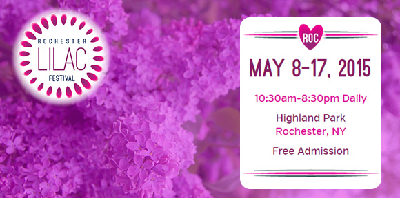 April 24th-26th High Falls Film Festival – www.highfallsfilmfestival.com. May 2nd Imagine RIT Innovation & Creativity Festival – www.rit.edu/image. May 8th-17th Lilac Festival. May 9th Lilac Festival Parade – www.lilacfestival.com. May 10th Mother’s Day.