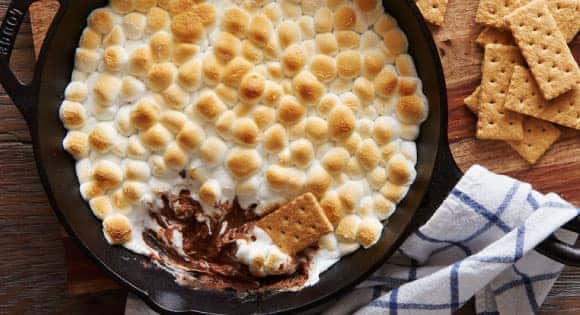 MAKE IT: Heat oven to 450ºF. Place peanut butter cup candies in single layer in bottom of ungreased 10- or 12-inch cast-iron skillet; top with marshmallows. Bake 5 to 10 minutes or until marshmallows are golden brown and toasted. Serve immediately with graham cracker pieces for dipping.