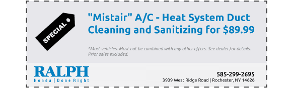 “Mistair” A/C – Heat System Duct Cleaning and Sanitizing for $89.99. Did you know that mold, mildew and fungi may be growing in your air conditioning system? The hot, damp confines of your vehicle’s air conditioning system could be a breeding ground for bacteria and fungi. The musty odor emitted from your ventilation system may cause more than an inconvenience. Prolonged exposure can cause some to develop allergy symptoms such as difficulty breathing, sneezing or a running nose.