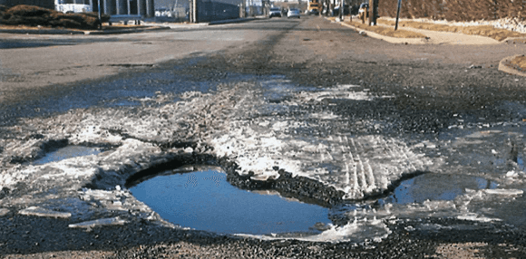 After a brutal winter, spring’s warmer weather comes as welcome relief — except for what it does to the road. March and April is prime pothole season, and every vehicle on the road is a potential victim. While a pothole can form at any time of the year, they really “spring up” after winter. The wear and tear on the road from traffic causes small cracks in the asphalt, that allow water to seep in to the soil below. When temperature drop low enough, the water freezes and expands, putting force on the pavement that causes it to rise. Once the temperature rises again there’s a little pocket beneath the surface that eventually causes the pavement to break. And so, spring means lots of potholes. Even the best state DOT has trouble keeping up with repairs on the highways, and truck stop parking lots can turn into tire-eating landmines. Drivers need to be aware of the road ahead of them. Even a small pothole can do damage to a vehicle and some of the larger ones present real danger.