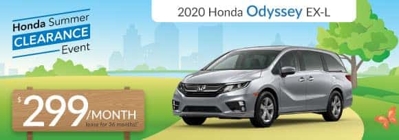 2020 Odyssey EX-L – MSRP: $39,055 – RL6H7LJXW. 24 month closed end lease. $3499 trade or cash down. First payment, $595 acquisition fee, taxes and DMV fees due at signing. 10,000 miles/year. $0.20 overage. To qualified buyers through AHFC. Offer valid through 8/31/20.