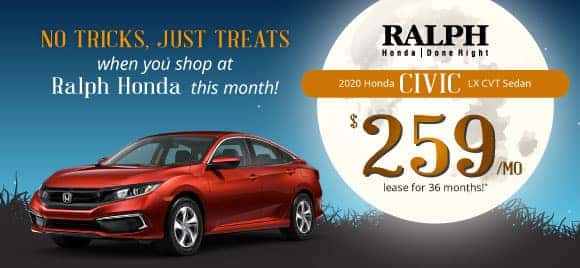 2020 Civic LX CVT Sedan – MSRP: $21,480 – FC2F6LEW. 36 month closed end lease. $0 due at signing. First payment, $595 acquisition fee, taxes and DMV fees due at signing. 10,000 miles/year. $0.15 overage. To qualified buyers through AHFC. Lessee responsible for maintenance, excess wear/tear. Dealer may affect actual payment. Offers valid through 11/2/20.
