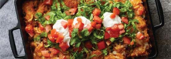 2. In 12-inch skillet, cook beef over medium-high heat, stirring frequently, until thoroughly cooked; drain. Stir in taco seasoning mix and water. Cook 3 to 4 minutes, stirring frequently, until thickened. Stir in enchilada sauce, black beans, 1 cup of the shredded cheese and the green onions.