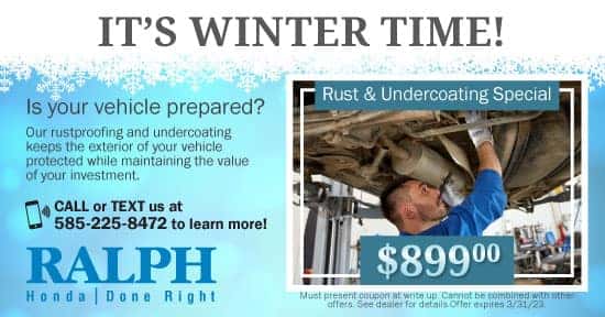 - Battery. Being stuck out in the cold with a dead battery is no joke. Have your battery tested by your trusted Ralph Honda Technician to make sure that it’s holding a charge so you don’t face any nasty surprises.
