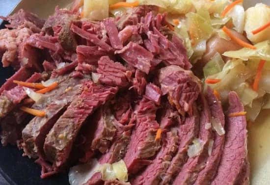 Slow Cooker Corned Beef and Cabbage. Ingredients: ½ pound baby carrots, ½ pound small yellow potatoes (such as Dutch Yellow Pee Wee potatoes), 1 sweet onion, cut into bite-sized pieces, 4 cups water, 1 (4 3/4-pound) corned beef brisket with spice packet, 3 tablespoons onion powder, 3 tablespoons garlic powder, 1 bottle Irish stout beer (such as Guinness), 1 medium head cabbage, quartered and leaves separated. Directions: Spread baby carrots, potatoes, and onion over the bottom of a slow cooker crock, then pour in water. Season brisket on the lean side with onion powder and garlic powder. Place brisket, seasoned-side down, onto vegetables. Pour beer over brisket, then sprinkle spice packet over top. Cover and cook on Low for 10 hours. Transfer brisket to a cutting board. Stir cabbage into the liquid and vegetable mixture remaining in the slow cooker. Cover and cook on High until cabbage is tender, 30 to 45 minutes. Slice corned beef and serve with cabbage mixture. Recipe credit: allrecipes.com.