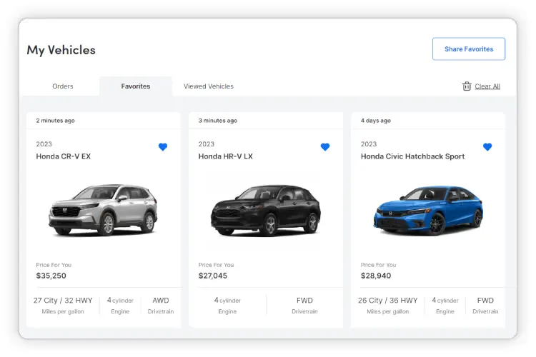 - Add additional vehicles to your vehicles list to compare your options and decide on the perfect deal for you.